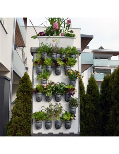 👨🏻🌾 Vertikal Gardening mit 10° Neigung neu gedacht. 💪🏻 Somit sorgt es für eine optimierte und vollflächige Sonneneinstrahlung. Wenig Platz und viel Ertrag 🥕🌶️🥒 und zusätzlich kann es mit den 4 Rädern auf harten und glatten Untergrund leicht bewegt werden 🛹
